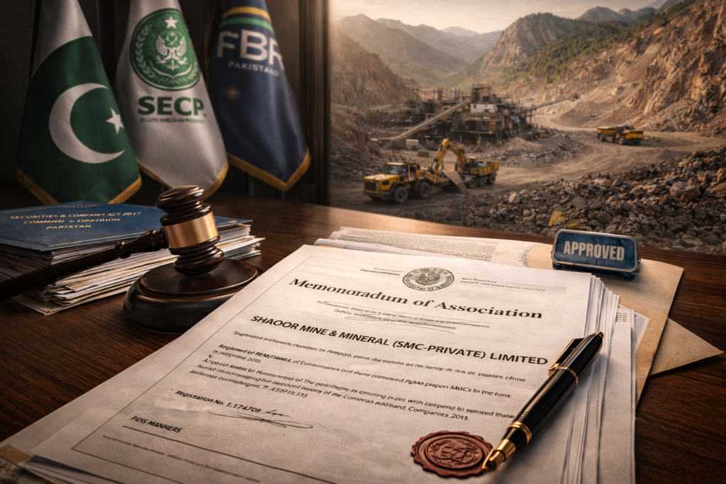 Under our SECP-registered Memorandum of Association, the company is fully empowered to explore, excavate, and trade all types of minerals and ores.